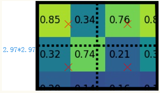 利用周围四个点插值当前点的结果,在两个方向做线性插值。